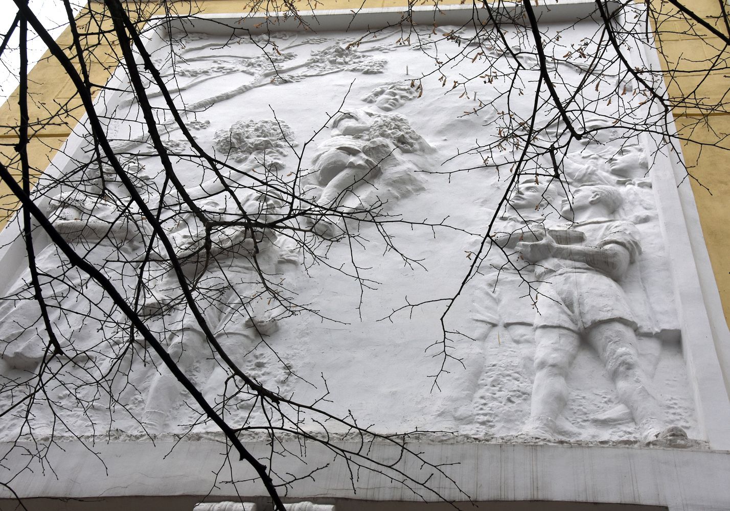 Один из барельефов изображает первую для Советского Союза высадку десанта, а второй — композицию с пионерами, которые окружают товарища Сталина, держащего на руках маленькую девочку. Сталина с этого барельефа скололи ещё в середине прошлого века, в эпоху борьбы с культом личности. А девочка, которую он держал на руках, так и осталась висеть в воздухе. Среди воронежцев эта композиция стала известна как барельеф с «парящей девочкой».![]()