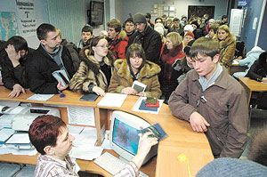 У посетителей центра занятости хмурые взгляды, но, по крайней мере, ведут себя молодые безработные спокойно. В районных центрах занятости, куда приходят люди постарше, всё бывает не так пристойно. Сотрудники центров рассказывают, что им частенько приходится улаживать скандалы, а порой дело доходит до драк, когда кто-то пытается штурмом занять место в очереди...