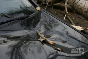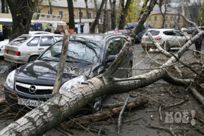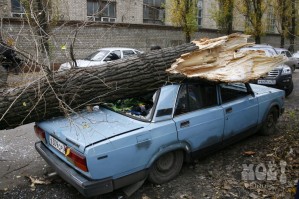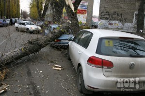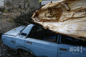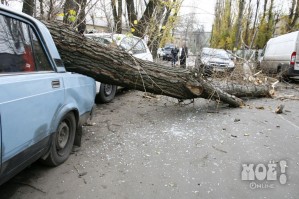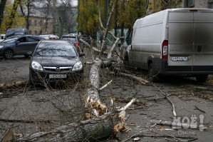 результате падения дерева на улице Дружинников. Только чудом удалось избежать