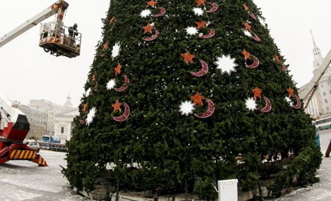 В Воронеже главную ёлку города украшают исламские полумесяцы и звёзды