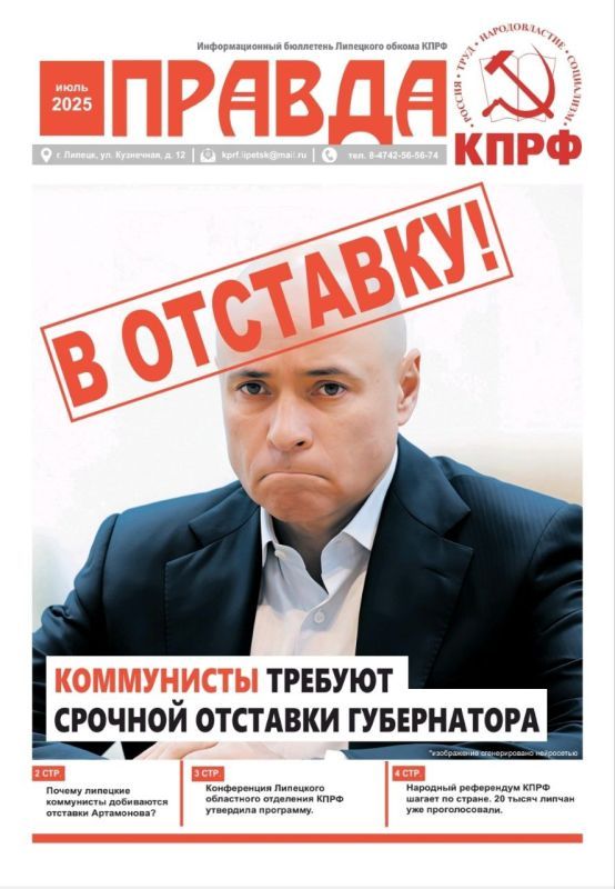 «Ни клеветы, ни экстремизма в газете нет. Есть правда о деятельности губернатора Артамонова в Липецкой области: икорные вечеринки во время СВО, беднеющее и вымирающее население, концессии и лизинговые схемы в интересах семьи», — прокомментировали коммунисты.