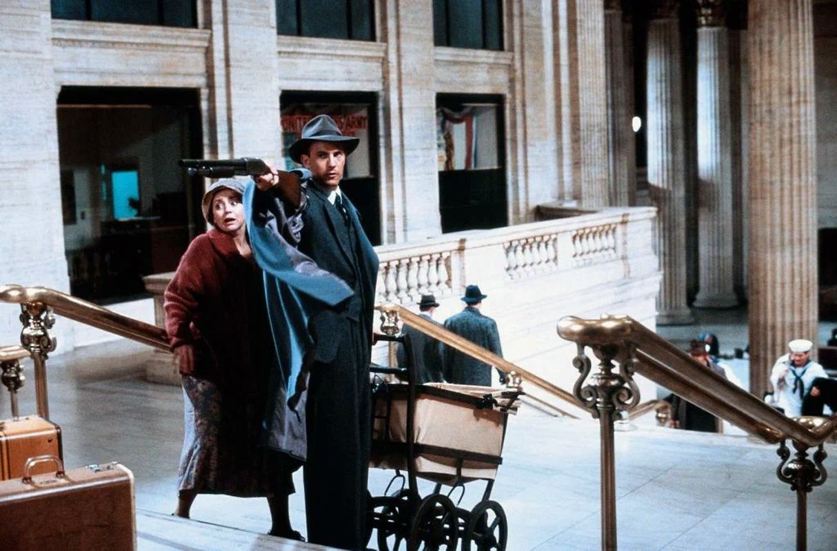 Блестящая роль Коннери и достаточно наивная, но не лишенная актерской харизмы, игра молодого красавца Кевина Костнера, затмили самого Де Ниро в «лысом» гриме Аль Капоне с его фирменным ужимками и прищуром. В кои веки Роберту пришлось играть почти карикатуру, а выдуманные сцены перестрелок (чего стоит один арест партии виски на мосту или цитата из Эйзенштейна с коляской на лестнице), смотрелись как откровенный треш. И даже привлеченный для работы над картиной Эннио Морриконе отличился халтурным саундтреком.