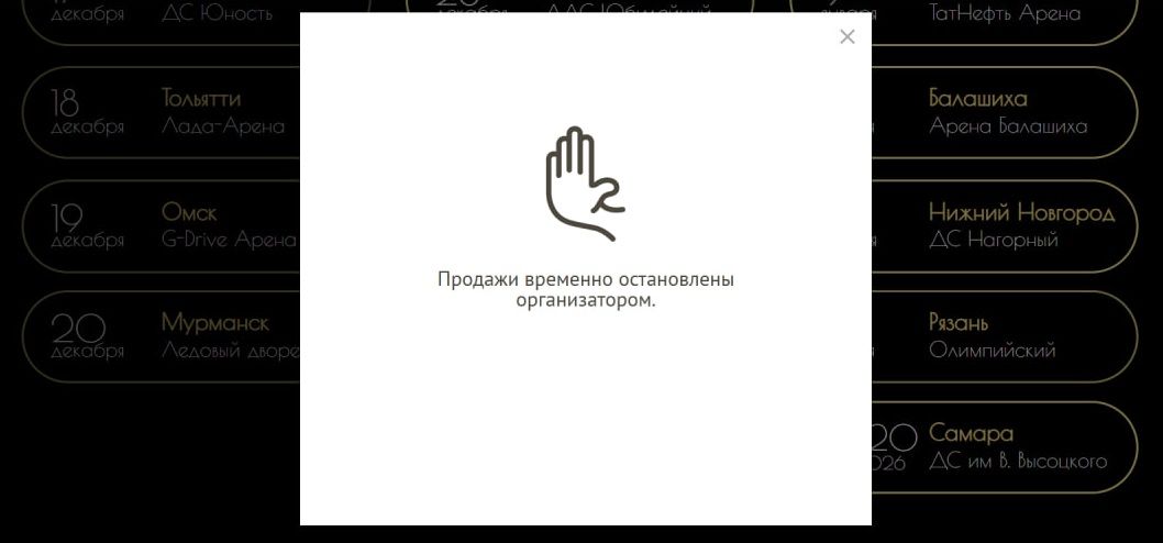 В Воронеже шоу «Щелкунчик на льду» было запланировано на 2 января. Сейчас на официальном сайте мероприятия продажа билетов остановлена на все три показа.