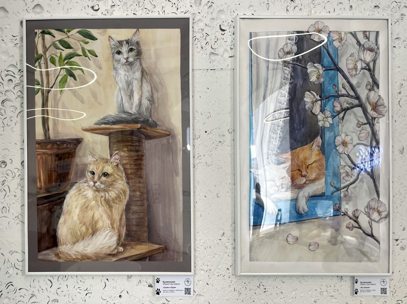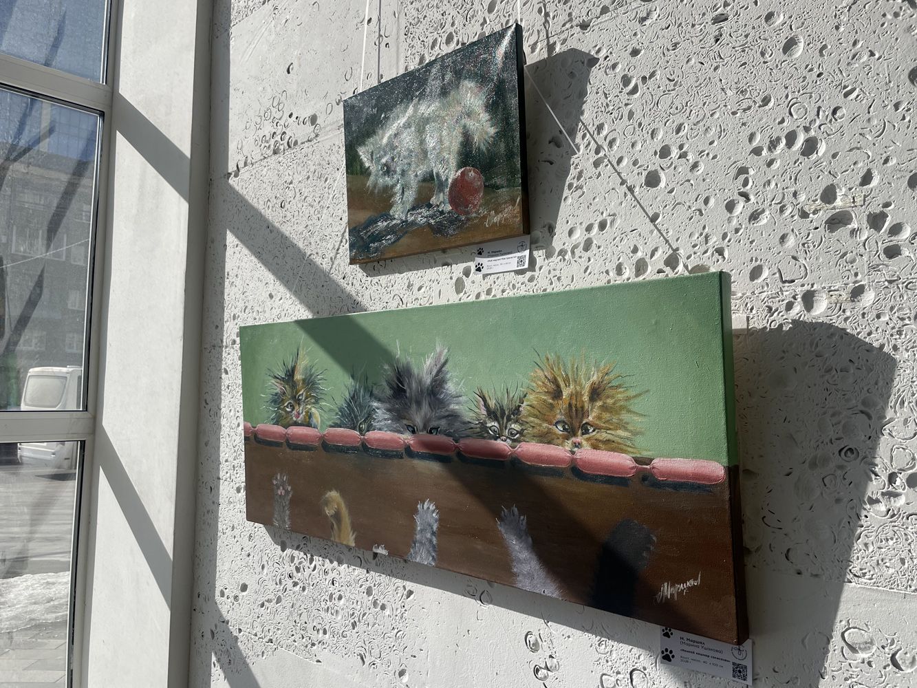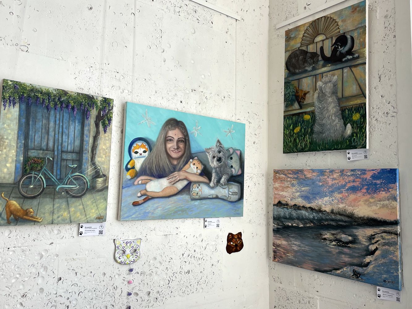 — На картинах есть детали в виде рыбок и мышек, это всё то, что любит наша кошка, — объяснила Ольга. — Каждая картина — это не просто изображение животного, а своего рода оберег, наполненный любовью и надеждой на лучшее.