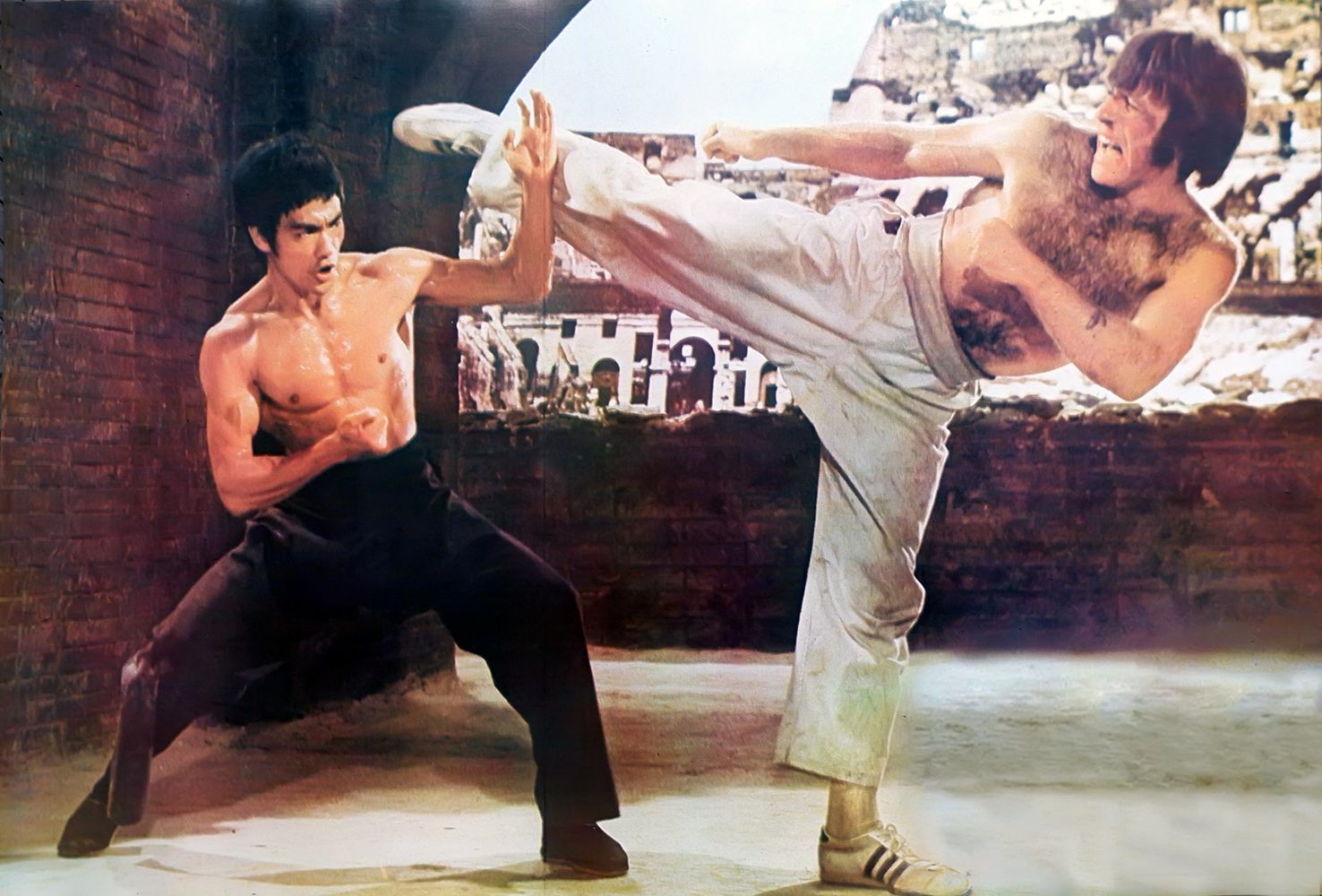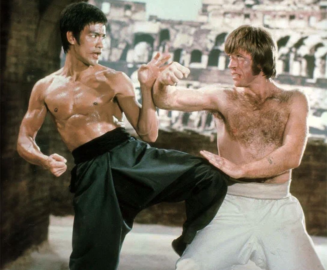 И киносхватка состоялась. Да такая, что вошла в золотой фонд лучших экранных драк. Чак был ещё без бороды и ковбойской шляпы, но сражался здорово. Сцену снимали в римском Колизее, причём без разрешения (пришлось дать взятки местной охране). Это была принципиальная схватка мастера боевого направления ушу (американцы назвали его кунг-фу, это название — неправильно понятая американцами китайская фраза) Брюса Ли, который никогда не дрался в технике карате и вообще спортсменом не был, с каратистом, обладающим чёрным поясом, — Чаком Норрисом. Битва, воплотившая исторически сложившуюся неприязнь китайцев к японцам.