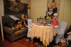 экспонатах — дореволюционных: ватные мухоморы, крошечные пупсы в кружевных