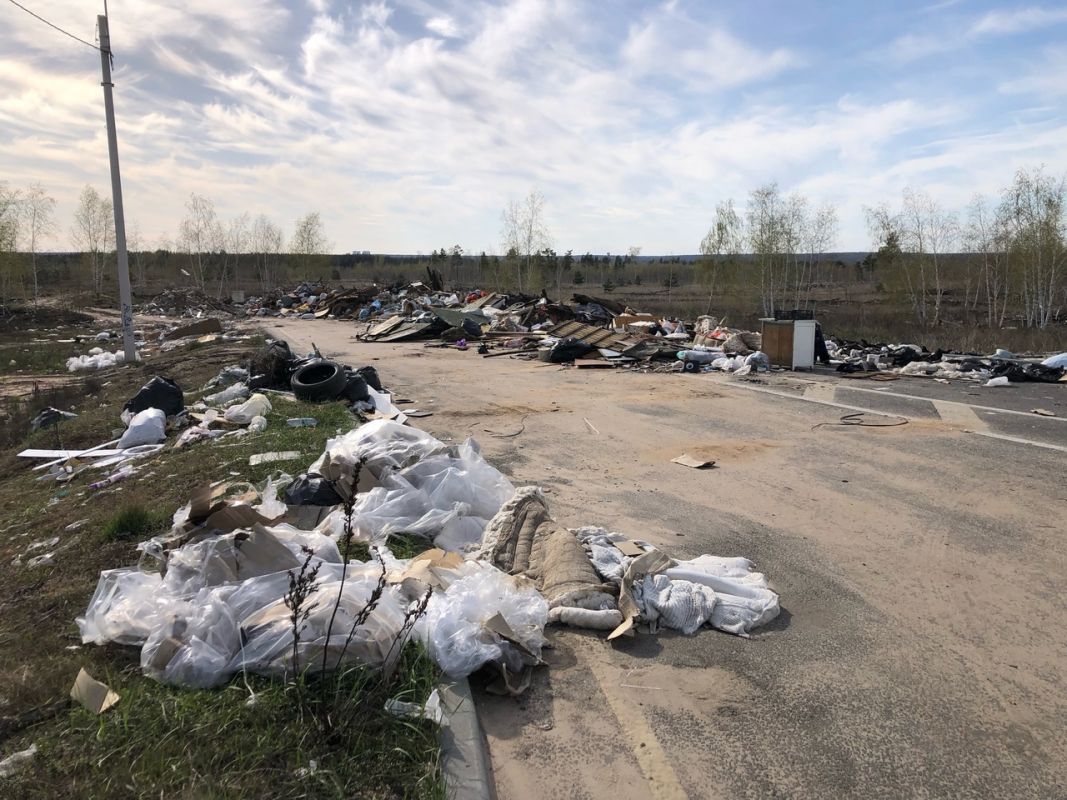 Матрасы, шифер, дверцы от шкафов и другой мусор расположились на новеньком, асфальтированном участке улицы Богатырской. Представители Большой воронежской экотропы заметили мегасвалку ещё 2 месяца назад — с тех пор ничего не изменилось.