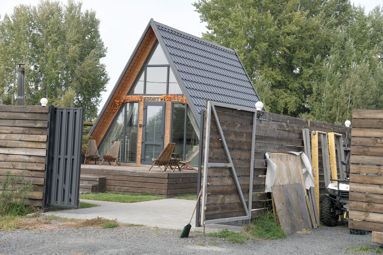 Сергей ведёт журналистов «МОЁ!» на улицу Заливную, вдоль которой протекает речушка 5 — 7-метровой ширины. Показывает вправо на ряды аккуратных коттеджей. Это и есть тот самый глэмпинг.