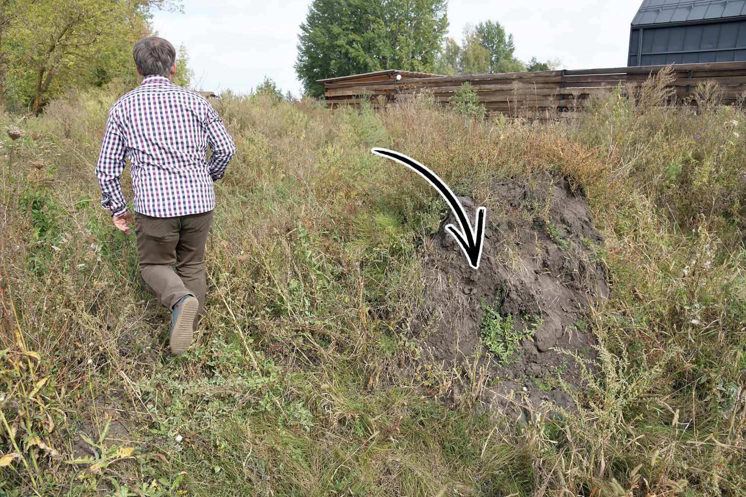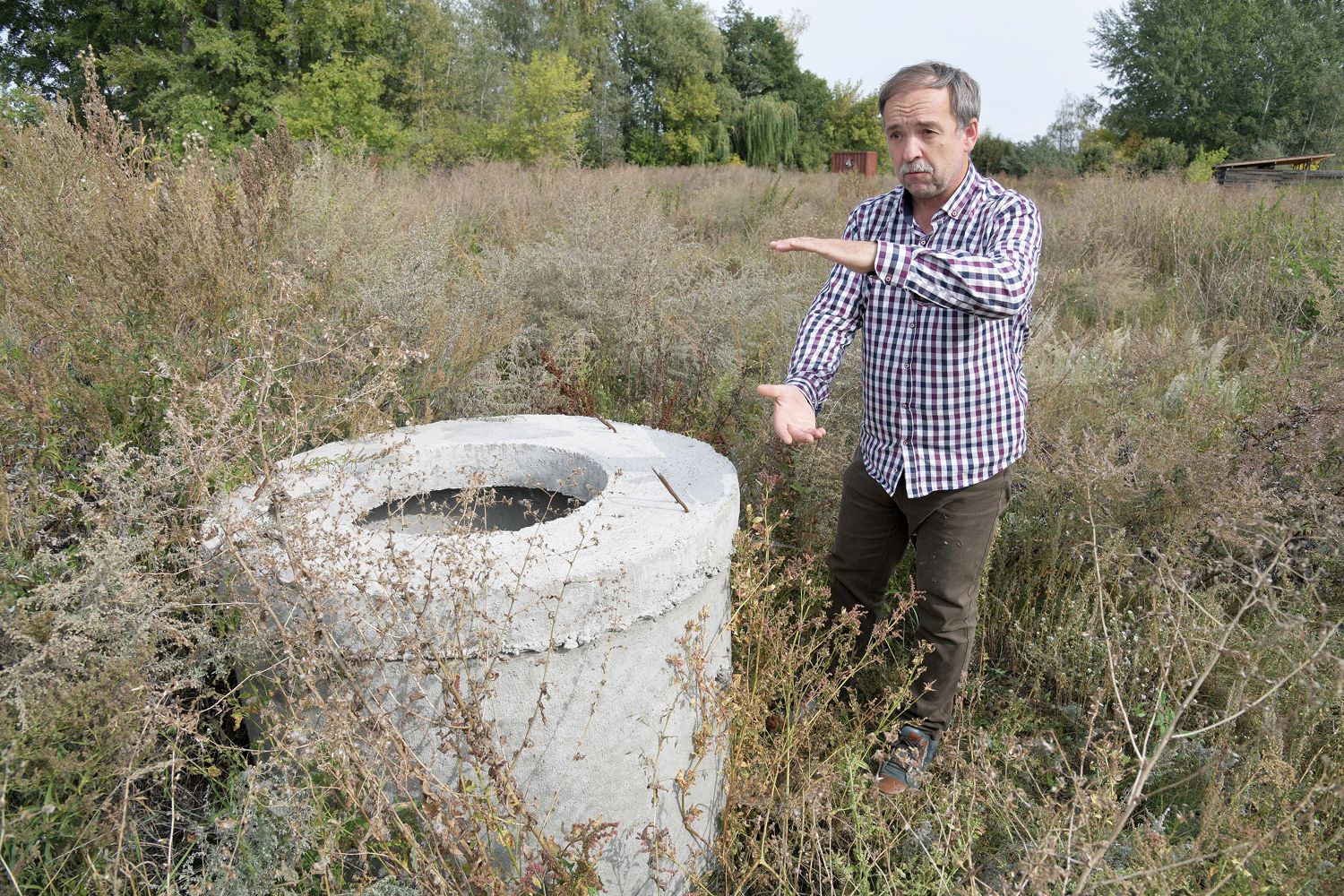 Мы обходим огороженную территорию. С обратной стороны на лугу, куда в силу рельефа вряд ли сможет подъехать канализационная «бочка», несколько открытых колодцев с коричневой жидкостью внутри. Возможно, это и есть отходы жизнедеятельности глэмпинга.