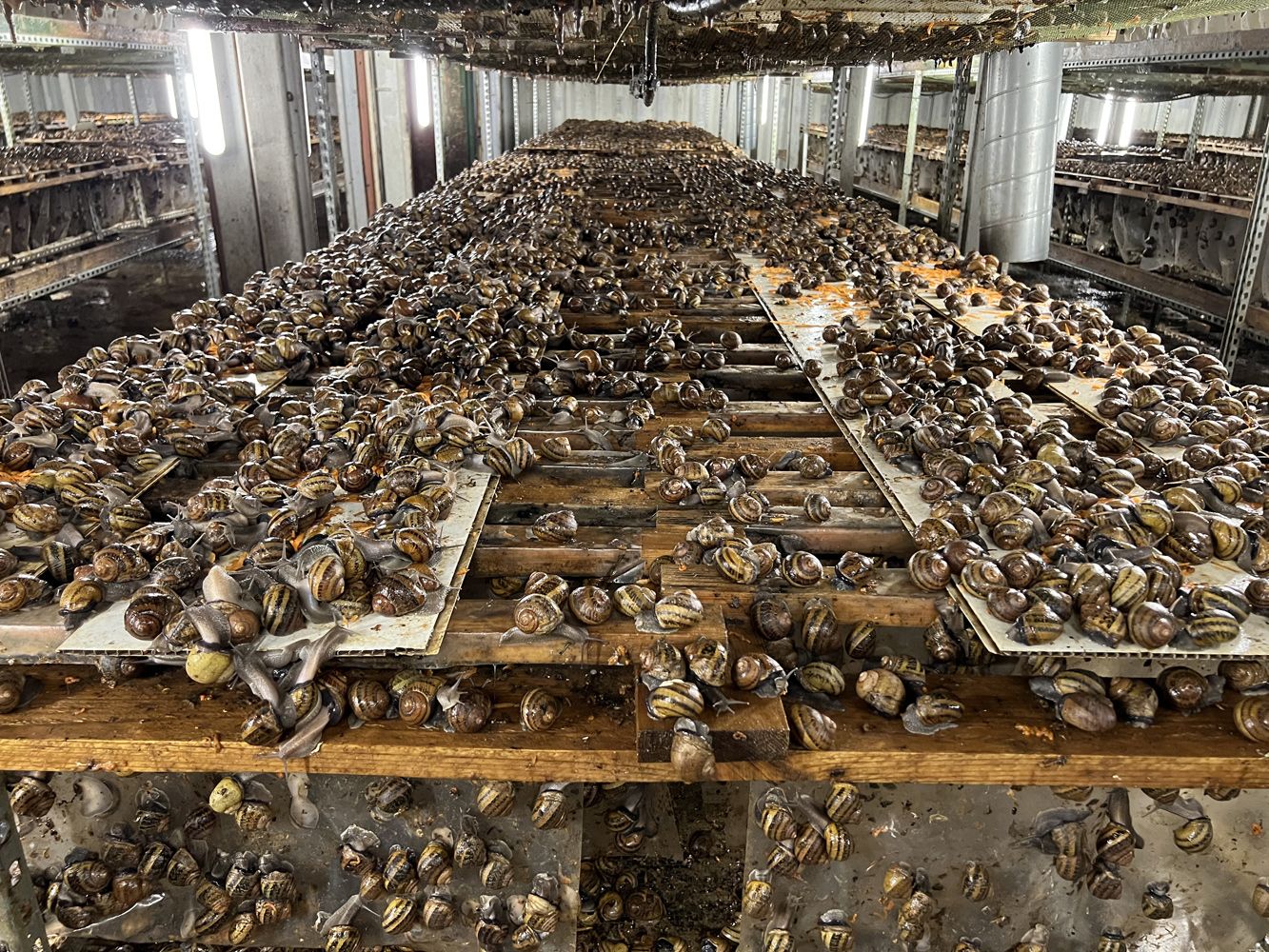 Сейчас у Сергея самая большая ферма в России, её площадь составляет 16 га, из которых примерно 3,5 га находится «под улиткой». Здесь обитают средиземноморские моллюски двух видов — Хеликс Асперса Максима и Хеликс Асперса Мюллер. За год с лишним «поголовье» брюхоногих выросло до 60 тонн — примерно до 2 миллионов улиток. Непосвящённому человеку довольно сложно понять, что перед ним улиточная ферма. Она представляет собой обычное заросшее поле, среди которого виднеются невысокие белые заборчики. Прикасаться к ним не рекомендуется, иначе велик риск получить разряд в 24 вольта — как для улитки, так и для человека это будет не смертельно, но довольно неприятно. Такие меры приняты для того, чтобы шустрые обитатели фермы не разбежались.