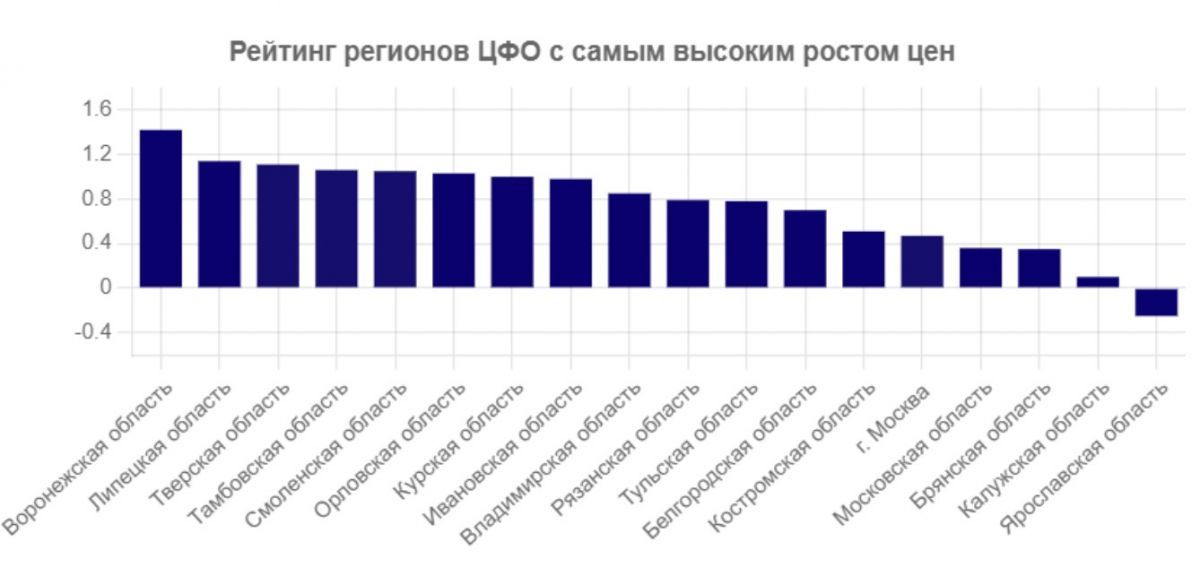 Антирейтинг по росту цен возглавила Воронежская область