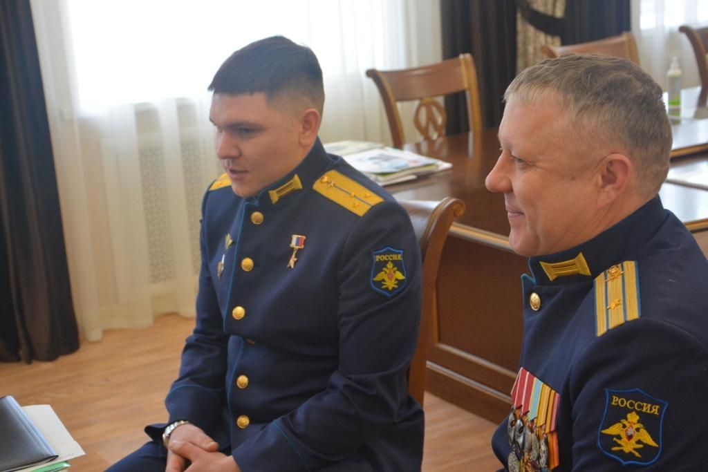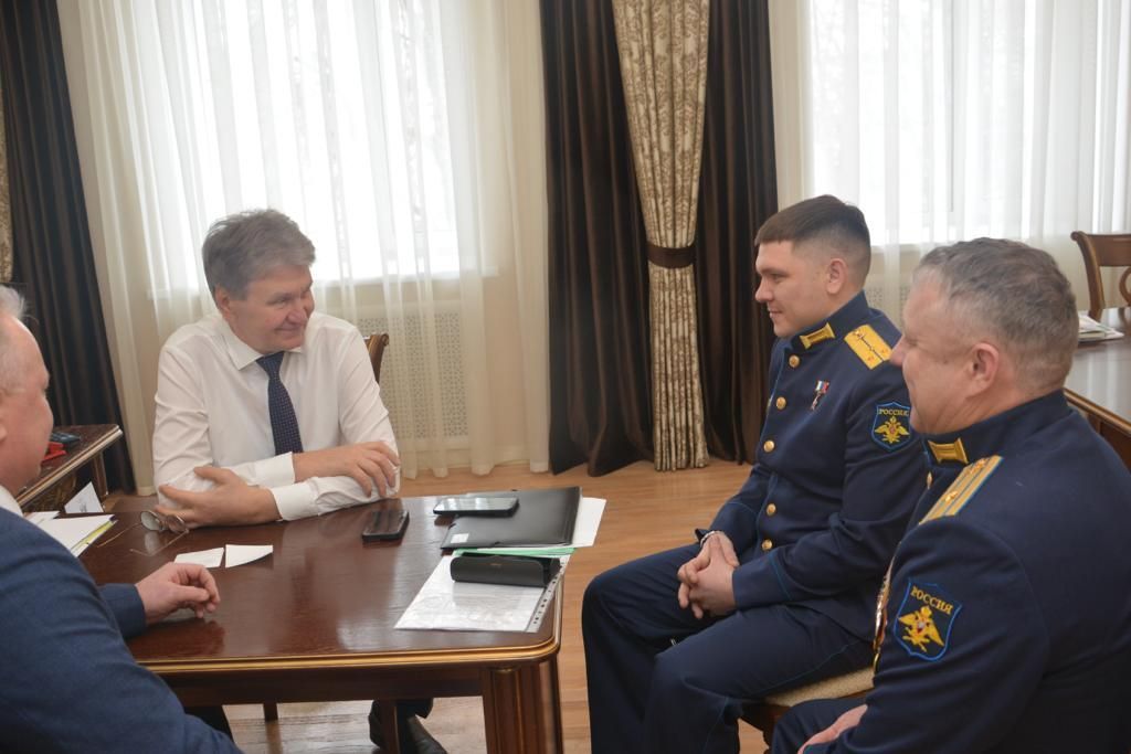С Героем России лётчиком Петром Каштановым и с обладателем двух орденов Мужества штурманом Дмитрием Коптиловым встретились глава городского парламента Владимир Ходырев и его заместитель Олег Черкасов.