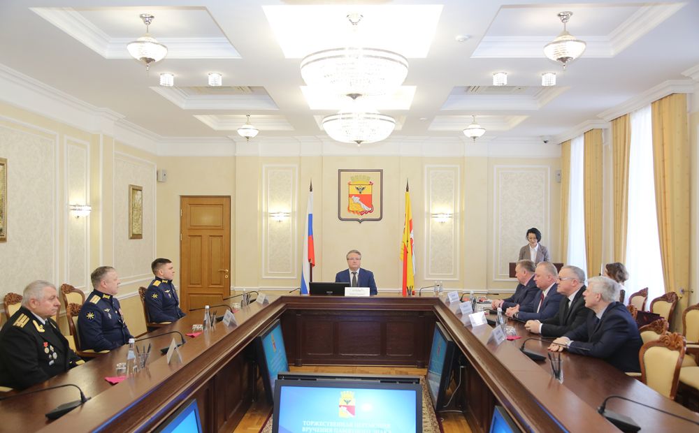 Накануне Дня защитника Отечества глава Воронежа Вадим Кстенин встретился с доблестным экипажем фронтового бомбардировщика – Героем Российской Федерации старшим лётчиком авиационного звена авиационной эскадрильи Военно-воздушных сил старшим лейтенантом Петром Каштановым и штурманом эскадрильи майором Дмитрием Коптиловым. Мэр вручил им высшую награду города.