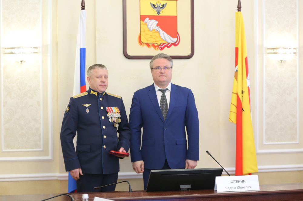 Также Петру Каштанову и Дмитрию Коптилову знак «Воронеж – город воинской славы» Вадим Кстенин вручил за стойкость и героизм, проявленные при защите интересов Российской Федерации, высокий профессионализм и личный вклад в повышение престижа воинской службы памятный.