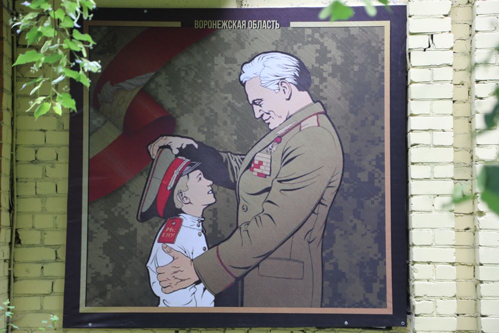 На военкомате Коминтерновского района Воронежа со стороны ул. Варейкиса появились баннеры с воронежцами-участниками СВО. Всего должны смонтировать изображения шести бойцов — добровольцев и контрактников, а также кадр из фильма «Офицеры» со ставшей крылатой фразой «Есть такая профессия — Родину защищать». Свои места заняли только несколько из них — работы продолжаются.