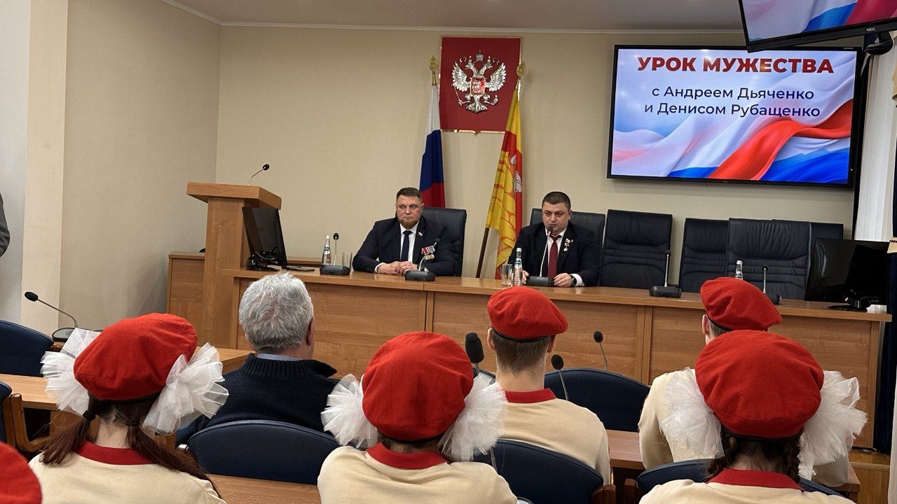 В Воронежской городской Думе 29 января собрались юнармейцы, чтобы пообщаться с героями, узнать об их опыте и получить ценные напутствия. Перед школьниками выступили председатель городского парламента и Герой России Андрей Дьяченко и депутат областной Думы и участник СВО Денис Рубащенко.