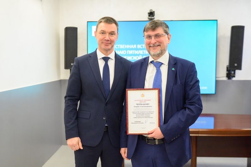 Дмитрий Маслов отметил высокий уровень профессионализма сотрудников ЦУРа и поблагодарил их, вручив благодарственные письма губернатора Воронежской области Александра Гусева: