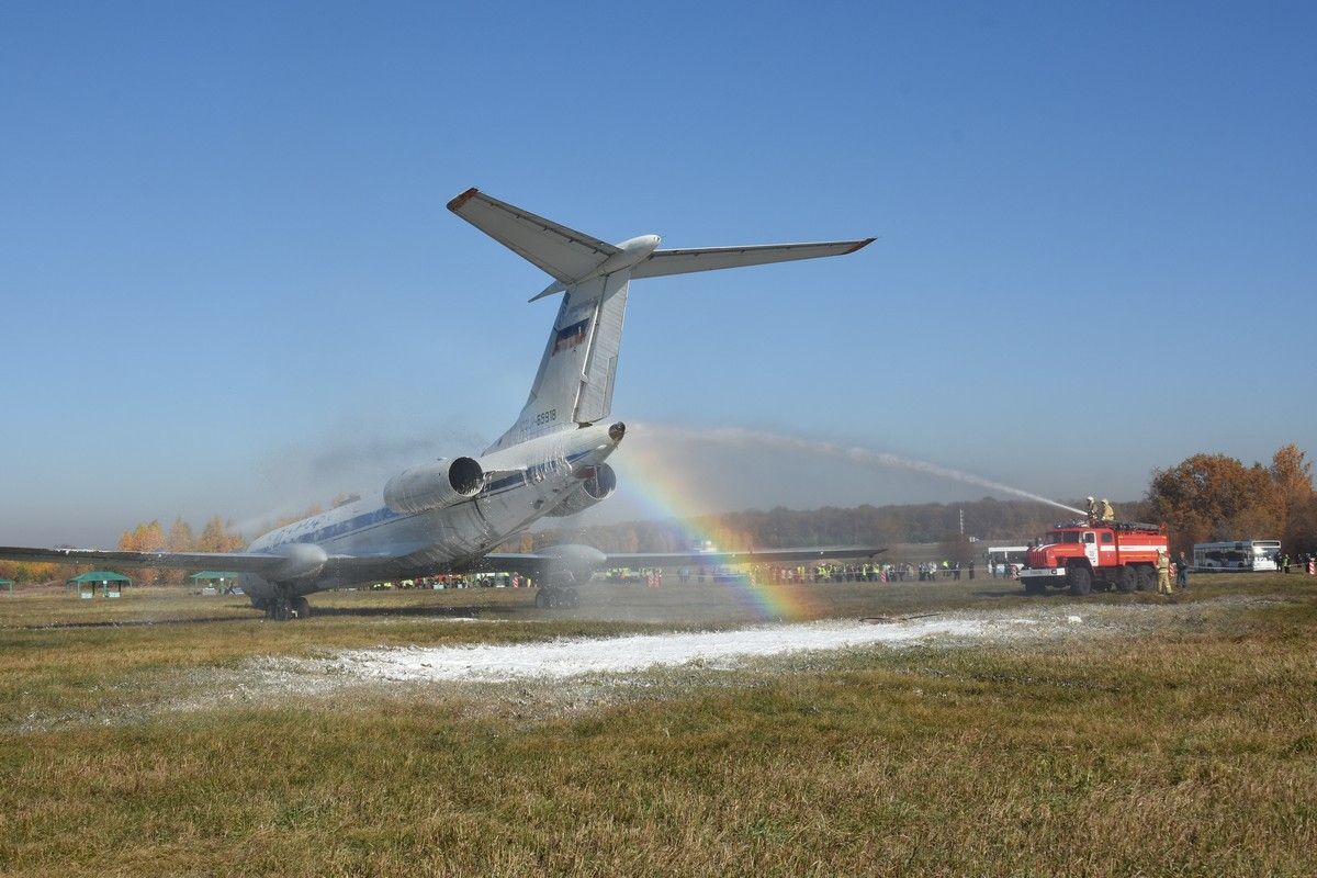 Четыре пожарных расчёта примчались через три минуты после тревожного оповещения. Примерно столько же времени у них ушло, чтобы справиться с огнём. Затем спасатели приступили к эвакуации пассажиров, роли которых исполняли работники аэровокзала. Те, кто «не пострадал», спускались по надувному трапу самостоятельно. А в 200 метрах их уже ждал автобус.