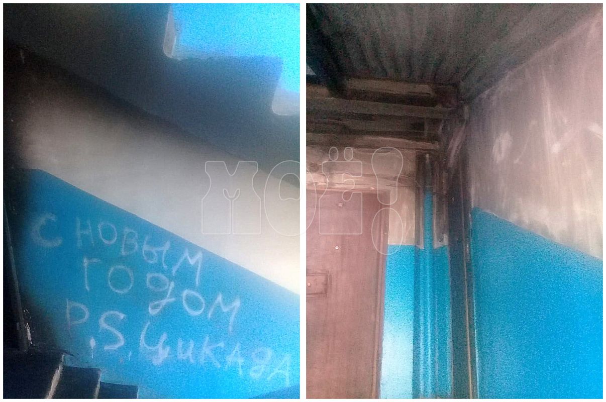 По словам читательницы «МОЁ! Online», неизвестные написали на стене подъезда: «С Новым годом! P.S.: цикада». Затем подожгли у дверей квартиры автомобильные шины и сбежали.