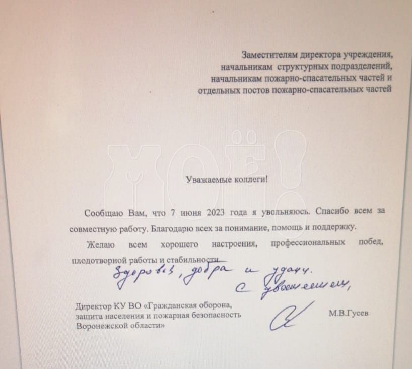 В последние годы учреждением «Гражданская оборона, защита населения и пожарная безопасность Воронежской области» руководил Михаил Гусев. Но на фоне уголовного дела он, по нашим данным, написал заявление по собственному желанию и оповестил об этом своих подчинённых. Его последним рабочим днём стало 7 июня.