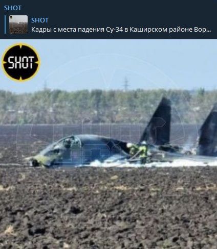 Очевидцы опубликовали видео с места падения самолёта Су-34 в Воронежской области. Фото и видео с места крушения появились в соцсетях.
