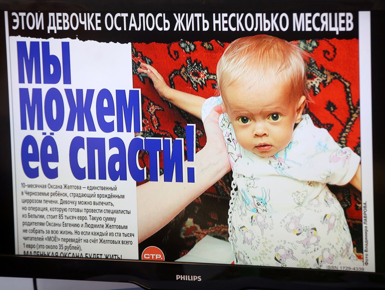 Оксана родилась в августе 2004 года. Примерно в месяц девочка начала резко желтеть, как это бывает при гепатите. Чуть позже выяснилось, что всё ещё серьёзнее — у малышки врождённый цирроз печени. С таким диагнозом рождается в среднем один из 15 тысяч младенцев. Самое страшное последствие цирроза — это пропотевание жидкости в брюшную полость. К июлю 2005 года Оксана была уже в очень тяжёлом состоянии, через несколько месяцев эта жидкость убила бы девочку. Да, без всяких «возможно» и «вероятно». К этому времени в России умерли десятки детишек с таким диагнозом.