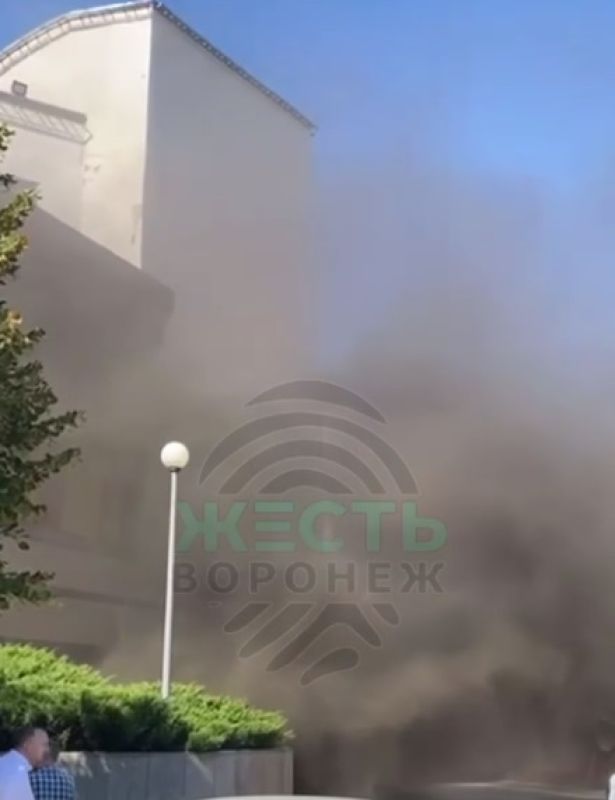 Пожар начался в здании банка в Воронеже (ВИДЕО)