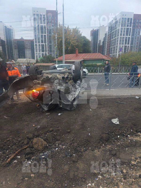 По предварительным данным, столкнулись «Фольксваген Поло» и автомобиль китайского производства. Вероятно, впоследствии одна из машин врезалась в дорожный знак, который сильно наклонился. Другое транспортное средство перевернулось на крышу.