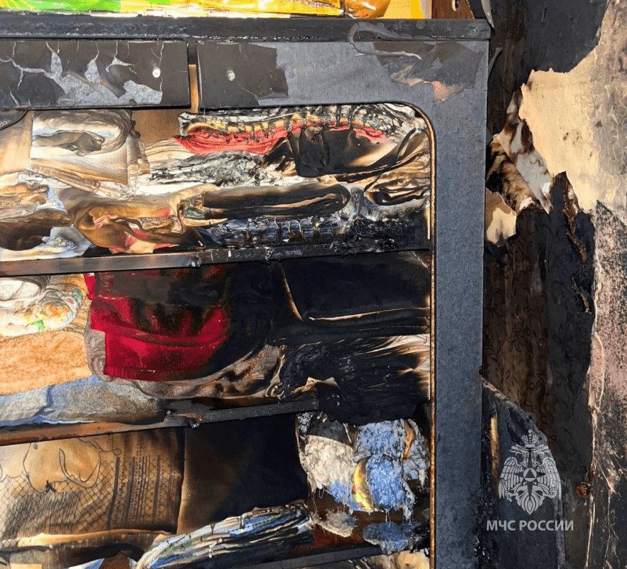 Сотрудники МЧС прибыли на место и потушили возгорание площадью 2 кв. м. Повреждены пол, мебель и стены.