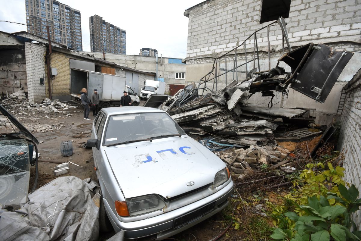 — Это гараж друга, он в командировке, попросил зайти посмотреть, что тут у него осталось, — делился с журналистами «МОЁ!» один из мужчин. — Вон стена частично вылетела, перегородка сломана, машина тут стояла — покорёжена. Друг снимает этот гараж, и вот какая беда приключилась.