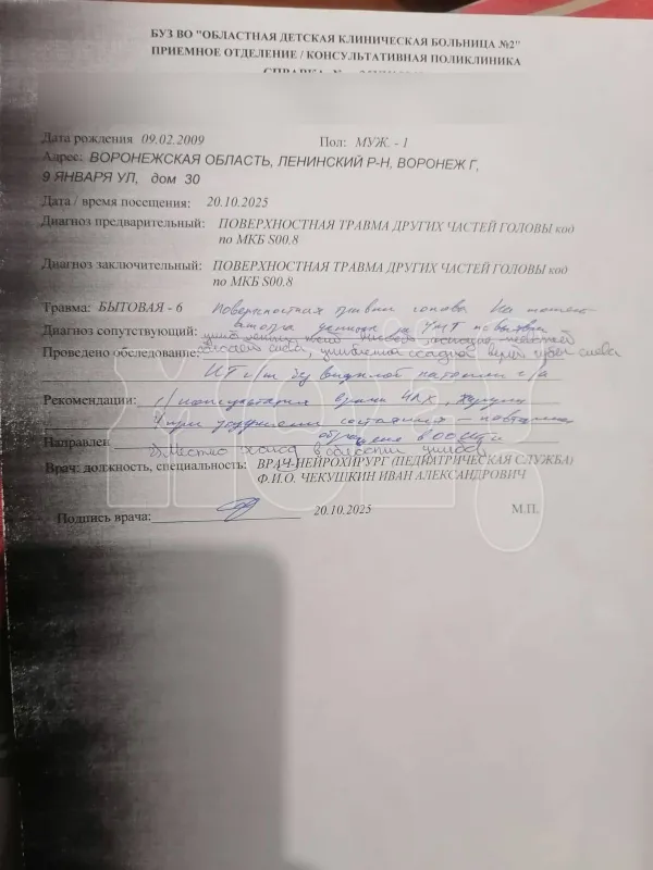 Когда воронежцы написали заявление в полицию, Алексей обозлился и пообещал отомстить. 20 октября он напал на 16-летнего подростка ночью в общем коридоре, когда тот шёл в туалет. У несовершеннолетнего травма головы, ему пришлось обращаться в больницу.