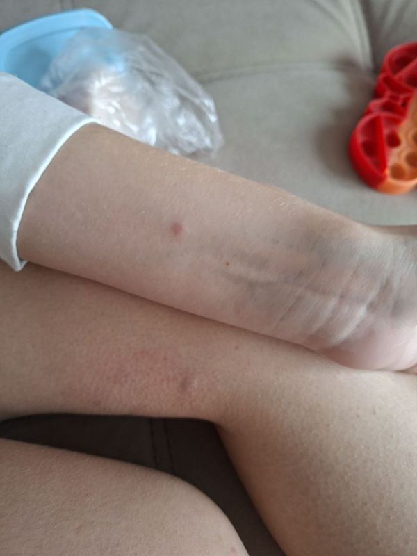 На девочке были плотные штаны и куртка, однако даже они не смогли полностью защитить от укусов. На ноге и руке остались большие синяки и ссадины.