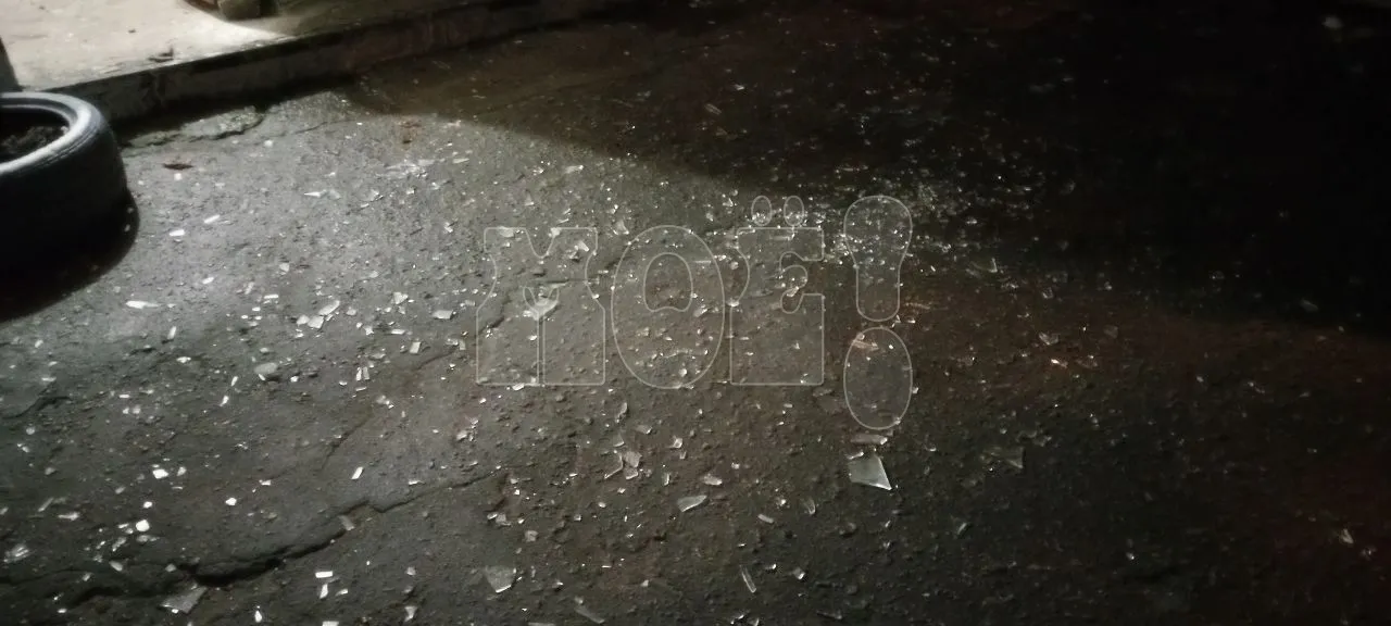 Дворы домов огорожены лентами. Повсюду разбросано разбитое стекло. При взрыве в домах выбило окна.