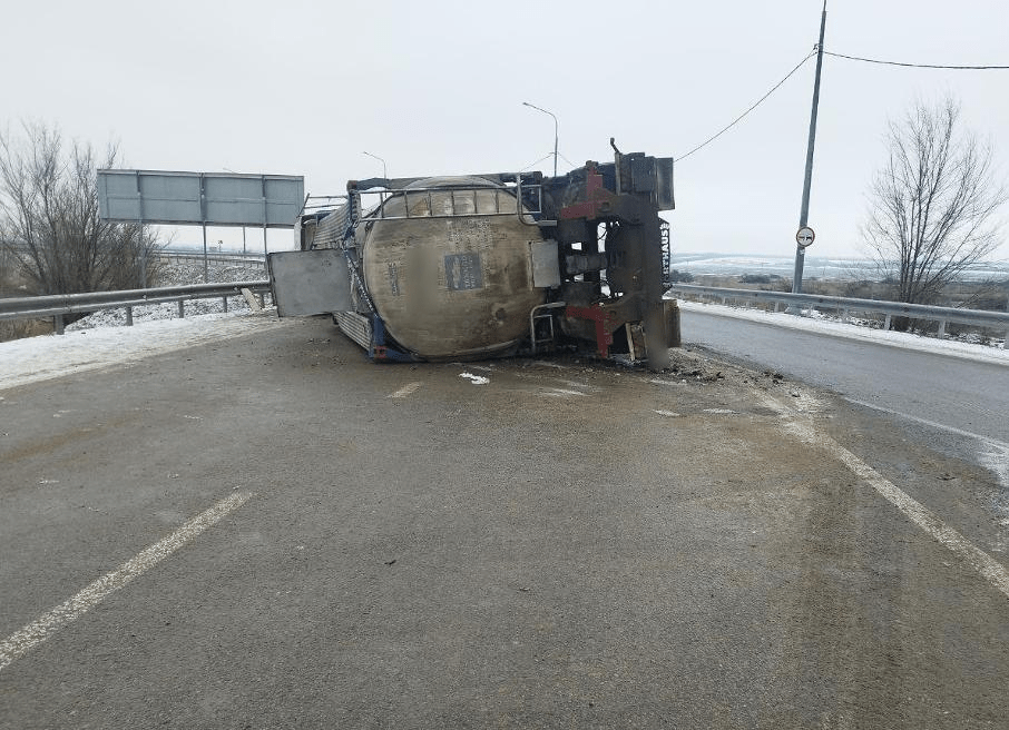 Фура с цистерной опрокинулась на воронежской трассе — есть пострадавший