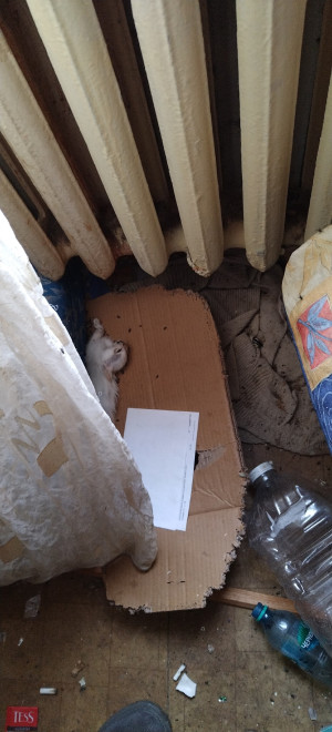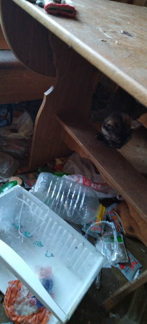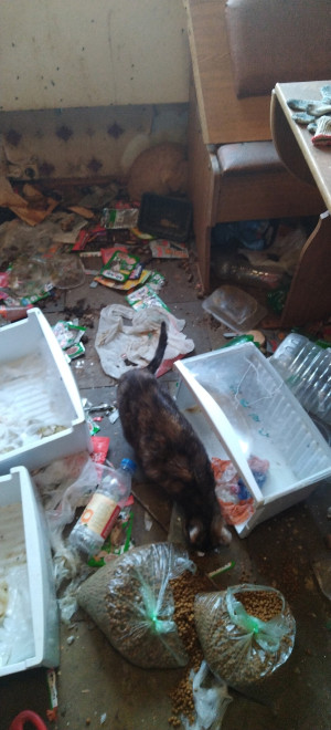 Внутри царил настоящий хаос: волонтёры обнаружили мёртвых маленьких котят и с десяток животных, которым удалось выжить. На полу были разбросаны груды мусора, пакеты, пищевые отходы. Повсюду лежали экскременты кошек.