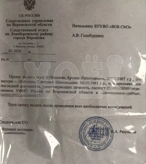 Восемнадцатилетний Артём Д. трагически погиб сегодня, 29 января, около часа ночи в одном из цехов воронежского АО «Воронежсинтезкаучук». Об этом «МОЁ!» рассказали его мама Светлана и брат Вадим.
