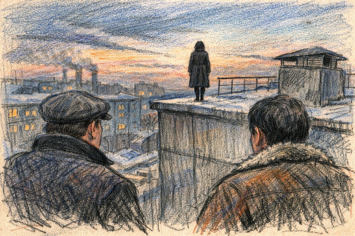 Вот и на этот раз, казалось бы, всё шло по плану: девушка испугалась и растерялась, вроде бы согласилась, но попросила второго пацана побыть пока в стороне. Больше того, и сам Ганс на какое-то время перестал плотно её опекать. Этой минуты ей хватило, чтобы выскочить через чердачное окно на крышу десятиэтажного дома…