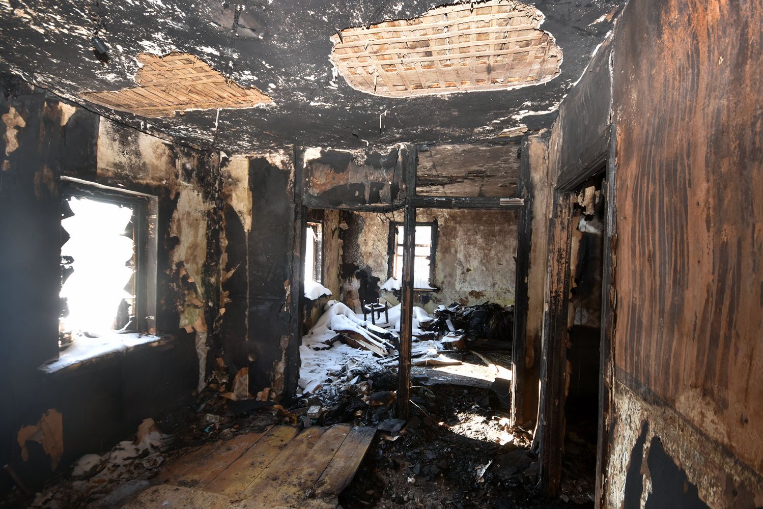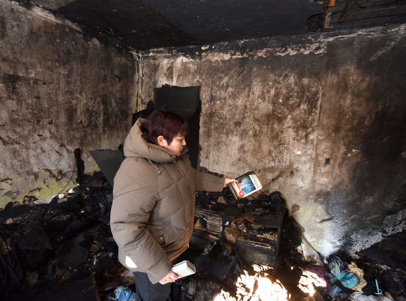 Хозяйка ходит по дому, изрядно обгоревшему изнутри, — конечно, вряд ли его можно восстановить. Один запах гари, разносящийся на сотню метров по округе, чего стоит.