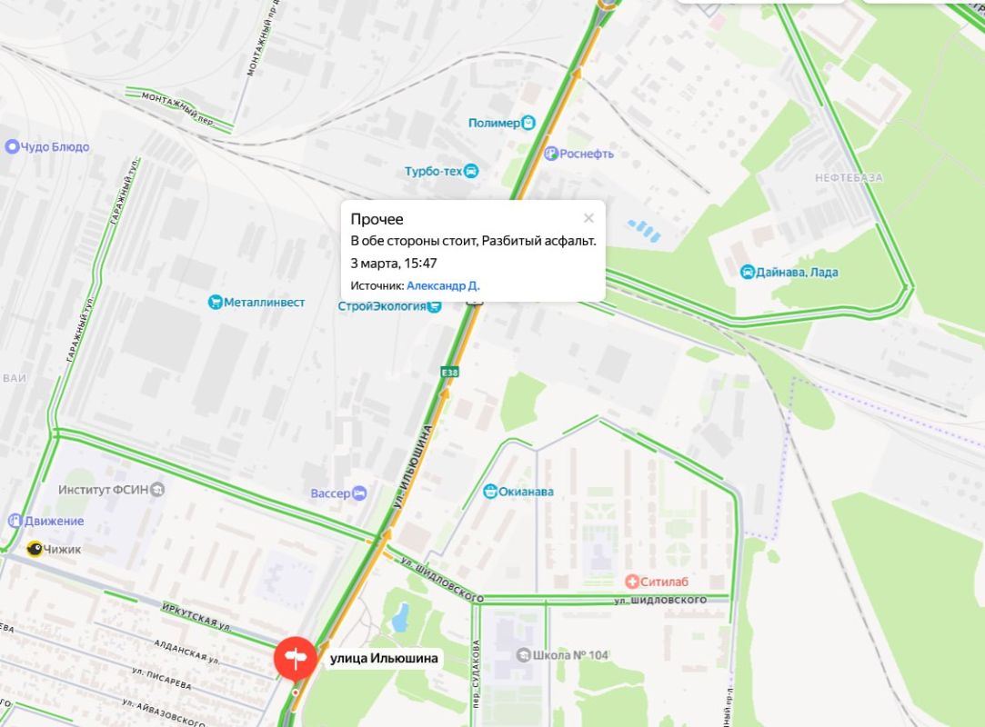На участке уже собирается пробка, так как машина почти полностью перегородила дорогу. На картах автомобилисты жалуются на сильно разбитый на улице асфальт.
