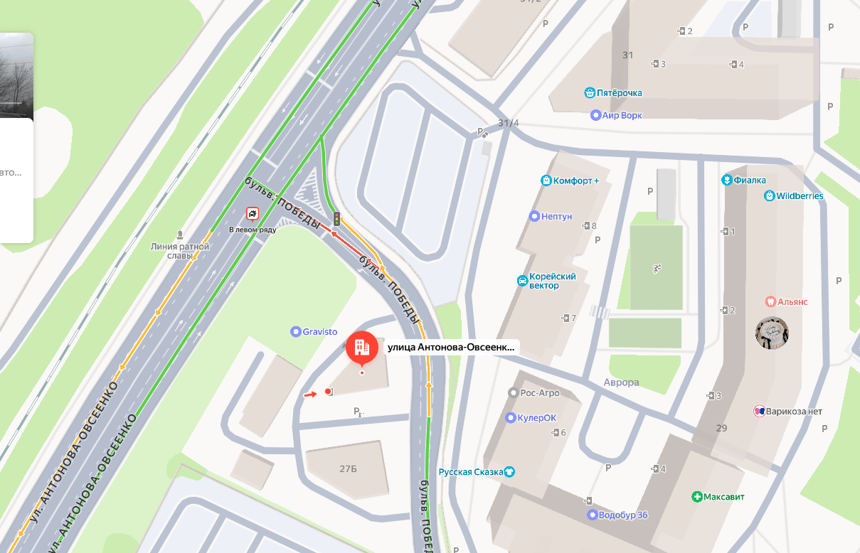 В районе пересечения окружной дороги и бульвара Победы столкнулись две легковушки. На месте образовалась небольшая пробка - она выделена на «Яндекс. Картах» бордовым цветом.