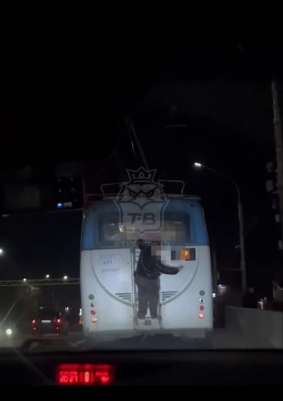 Воронежцы заметили подростка-зацепера на троллейбусе. Видео появилось в местных соцсетях.