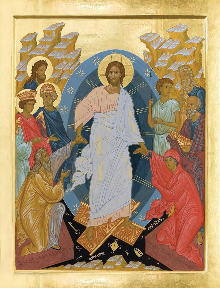 На ней Христос стоит над сокрушёнными вратами ада, держит за руку Адама (иногда — Еву), выводя прародителей из преисподней. Вокруг — ветхозаветные праведники.