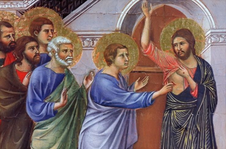 Спаситель явился еще раз и предложил Фоме осуществить его намерение. Увидев воскресшего Учителя, потрясенный Фома уже не проверяет, а восклицает: «Господь мой и Бог мой!». Христос не ругает Фому, а благословляет его путь от сомнения к вере и говорит ему: «Ты поверил, потому что увидел Меня; блаженны невидевшие и уверовавшие».