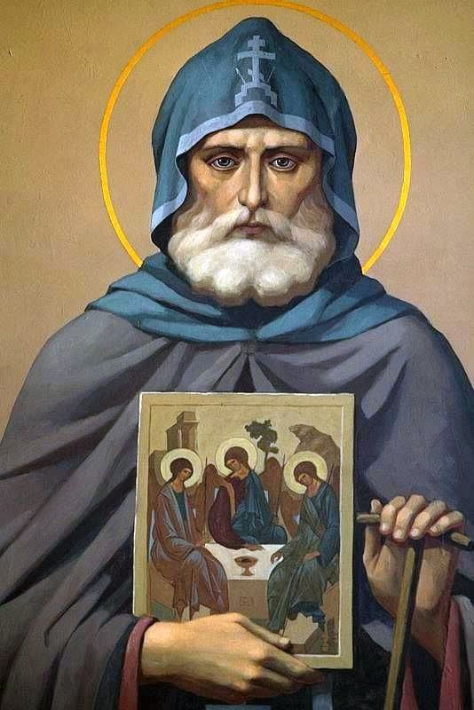 Преподобному после 25 лет затворничества явилась святая Троица. И был голос, произносящий созиждать церковь во имя Отца и Сына и Святого Духа.
