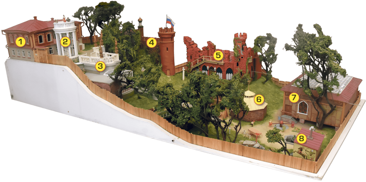 Рассматривая макет усадьбы, можно представить, какая красота была здесь 100 лет назад при талантливом хозяине-выдумщике...
