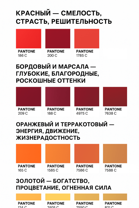 В 2026 году главной станет стихия огня — поэтому стоит отдать предпочтение насыщенным тёплым оттенкам. Они усиливают энергетику Лошади, придают уверенность и настраивают на активный, успешный год.