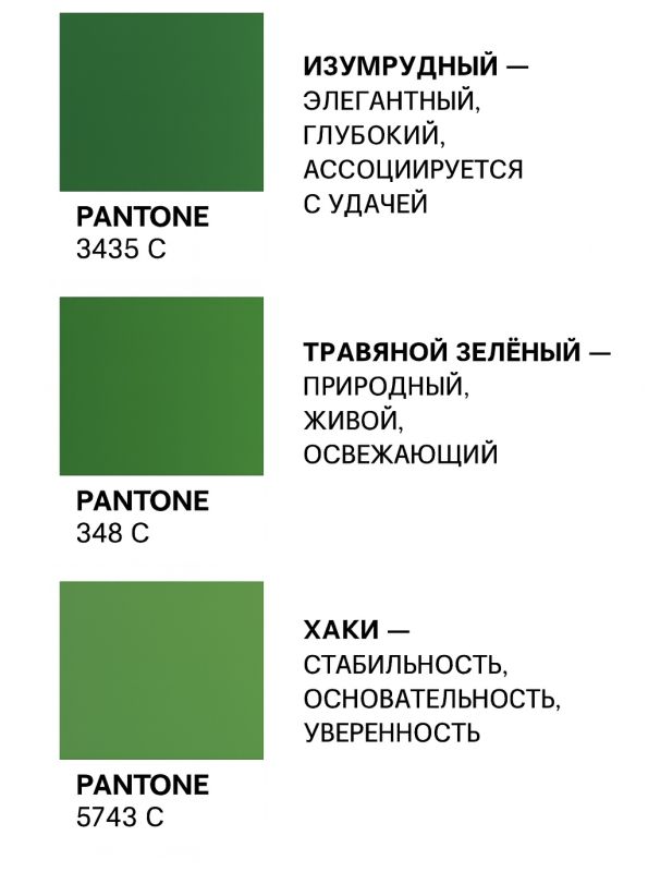 — изумрудный — элегантный, глубокий, ассоциируется с удачей;