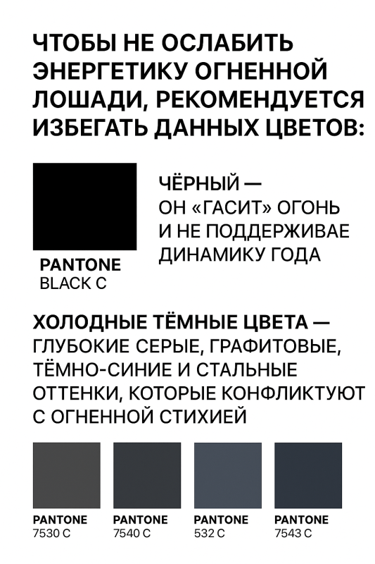 — чёрный — он «гасит» огонь и не поддерживает динамику года;