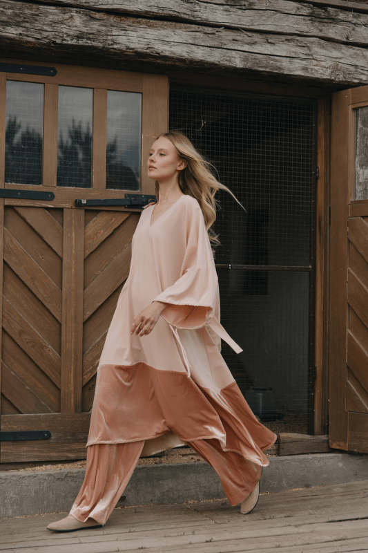 Тренд «платье на брюки» также пришёл с Востока. В этом сезоне он трансформировался: если раньше это было простое сатиновое платье, то сейчас — модели с кружевом. Носят их не в духе 1990-х или 2000-х, а на брюки и под жакет или пиджак, создавая многослойный, нарядный образ.