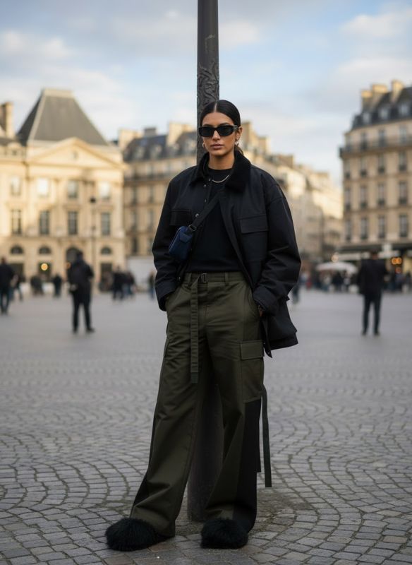 Главная идея — смешивать. Например, надеть спортивную куртку с вечерней юбкой или дополнить строгий костюм массивными кроссовками. Такой контраст делает образ живым и современным.